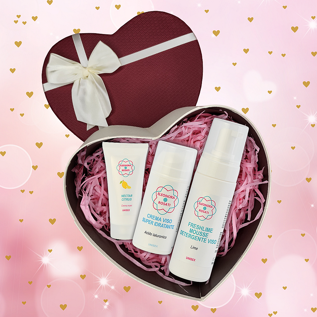 Regala un gesto di cura e affetto con Carezze d’Amore, il kit perfetto per chi ami. Racchiuso in una splendida scatola a forma di cuore, questo set unisex è pensato per coccolare la pelle al meglio. Al suo interno troverai una mousse detergente viso delicata ed efficace, una crema super idratante e una crema mani morbida e nutriente. Prodotti formulati per adattarsi sia alla pelle dell’uomo che della donna, donano idratazione profonda e risultati visibili, trasformando la skincare quotidiana in una vera carezza per il viso. Perfetto per un regalo elegante e dal cuore sincero.