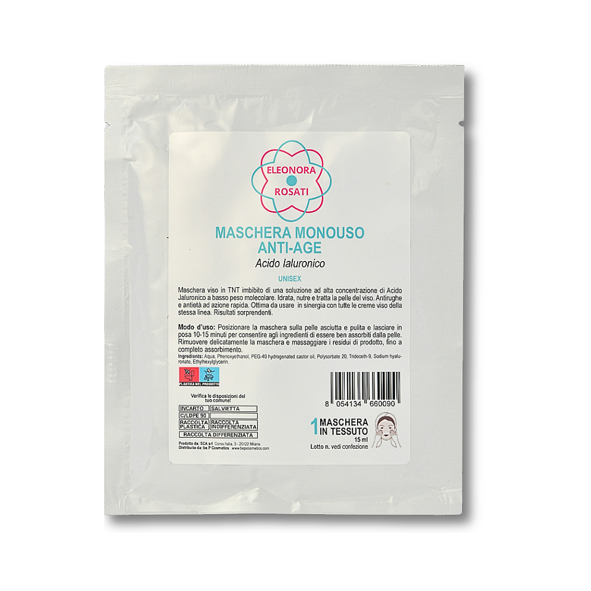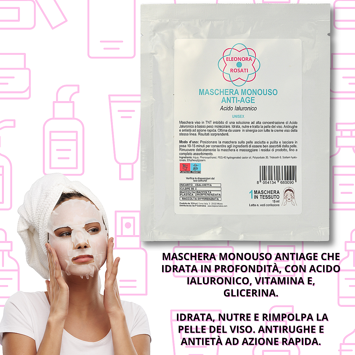 Maschera viso monouso tnt antiage – acido ialuronico